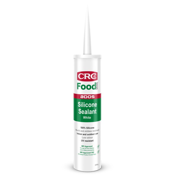 ADOS Food Grade Sealant is a low modulus silicone joint sealant with 100% neutral cure. This highly flexible sealant contains additives to resist mould and mildew, with excellent adhesion to plastics, ceramics, stainless steel, metals and glass. It is specially formulated for use in food, pharmaceutical and other clean environments where MPI certification is required, ideal for refrigerated rooms or household and other commercial uses. MPI approved for use at Farm Dairies and in Dairy processing. MPI Approved C82, all Animal Product Except Dairy.