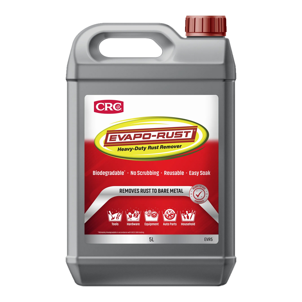 Evapo-Rust is a non-toxic rust remover for fast and effective restoration. The award-winning formula is specifically designed to remove rust, with no scrubbing or sanding required. It is safe, simple, and easy to use. No need for mixing, the solution is ready to use. Features & benefits: Non-toxic, non-caustic & non-corrosive Powerful heavy-duty formula for even the toughest rust Reusable with long lasting efficacy No fumes or bad odours, non-flammable, no VOC’s Will not harm unrusted steel, safe on other metals Will not affect plastic, PVC, Viton and non-oxide-based paints